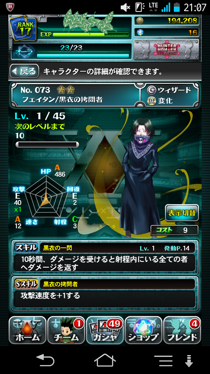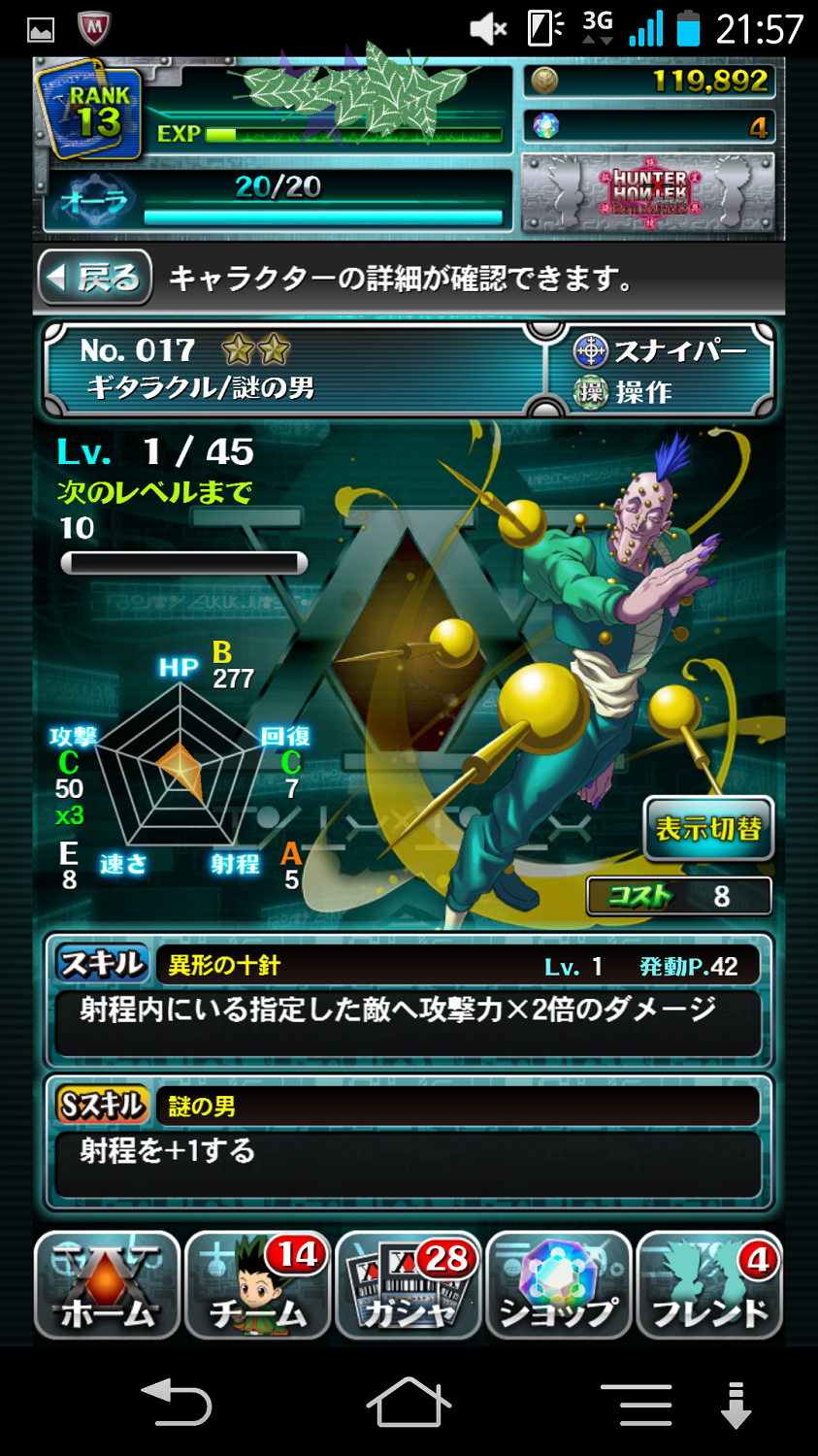 そのうちゾルディック家でチーム組みたいけど、パパとおじいちゃんが出てこない・・。