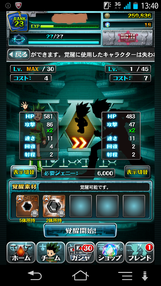 覚醒素材をそろえて