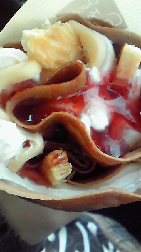 [PR] ×[PR]上記の広告は3ヶ月以上新規記事投稿のないブログに表示されています。新しい記事を書く事で広告が消えます。 一年に一回くらいかも。 好きなクレープ屋さんがあります。 でも一年に一回くらいしか食べてません。 なぜなら、ボリューミー過ぎてお昼ご飯の代わりとかに食べないと食べきれないから。 そんなクレープのお写真です。 苺ミルフィーユ味。 ミルフィーユは余り好みの味じゃなかった・・・・・ 次回は違うのを食べないと、といわけで忘れないようにメモがてら・・・(笑) [0回]PR コメント コメントを書く コメントを書く コメント送信