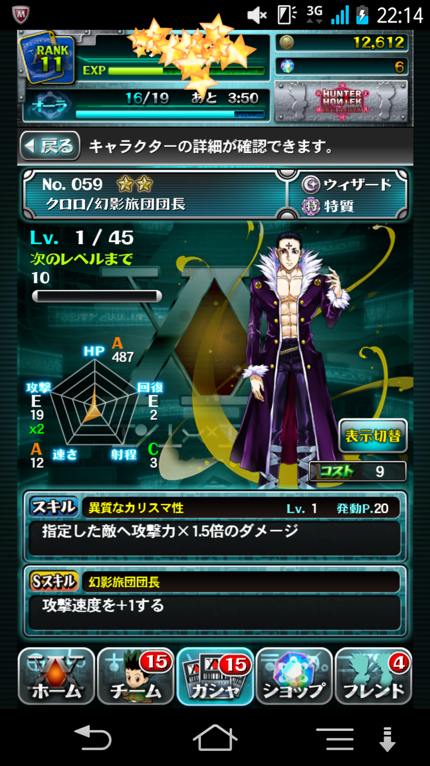 クロロは強いと見たんですが、・・・・レベル低いから?