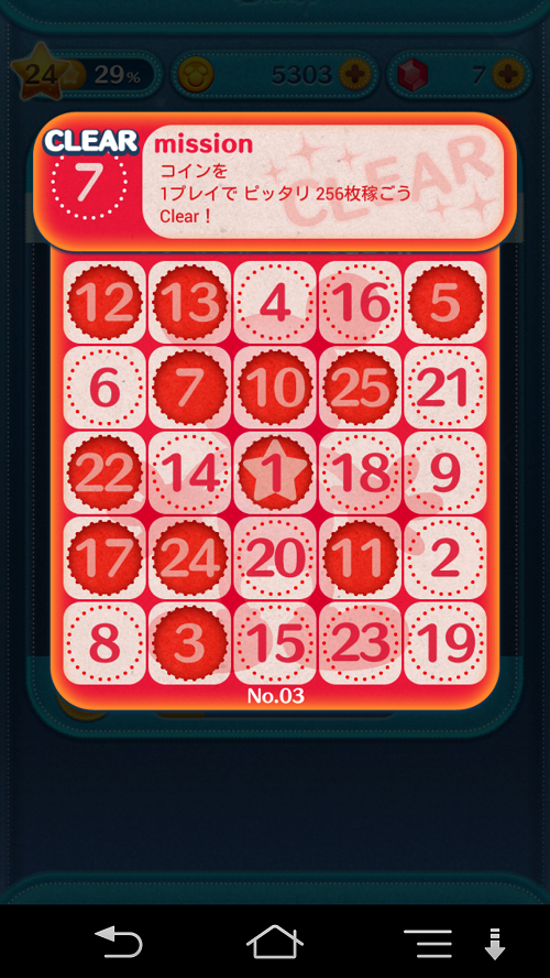 [PR] ×[PR]上記の広告は3ヶ月以上新規記事投稿のないブログに表示されています。新しい記事を書く事で広告が消えます。 今日もツムツムのこと。 ツムツムのビンゴカードで、これは難しいと思ったものがあります。 これ↓ 1プレイ中にピッタリ256枚。 ね、狙って出来るの? 何度も挑戦しましたが、1枚多くなったり 最後の最後で増えすぎたり 少なかったりして、狙ってって難しい ですが、出来ましたよ あまりにも嬉しかったのでスクショ撮りました(笑) ちなみに全部揃えられたときも嬉しさのあまり 撮りました。 新しいカードに漸く挑戦できる~~~と 新しいほうも中々難易度が高いですね 地道に達成してやるわっ。 [0回]PR コメント コメントを書く コメントを書く コメント送信